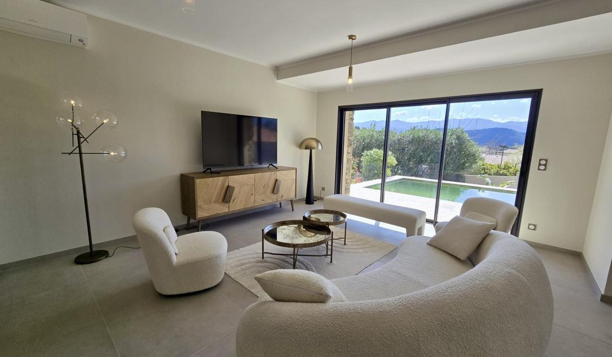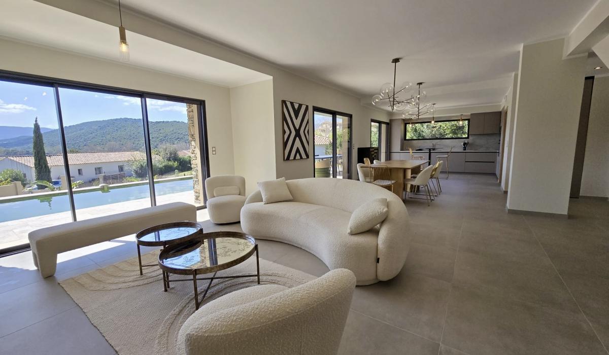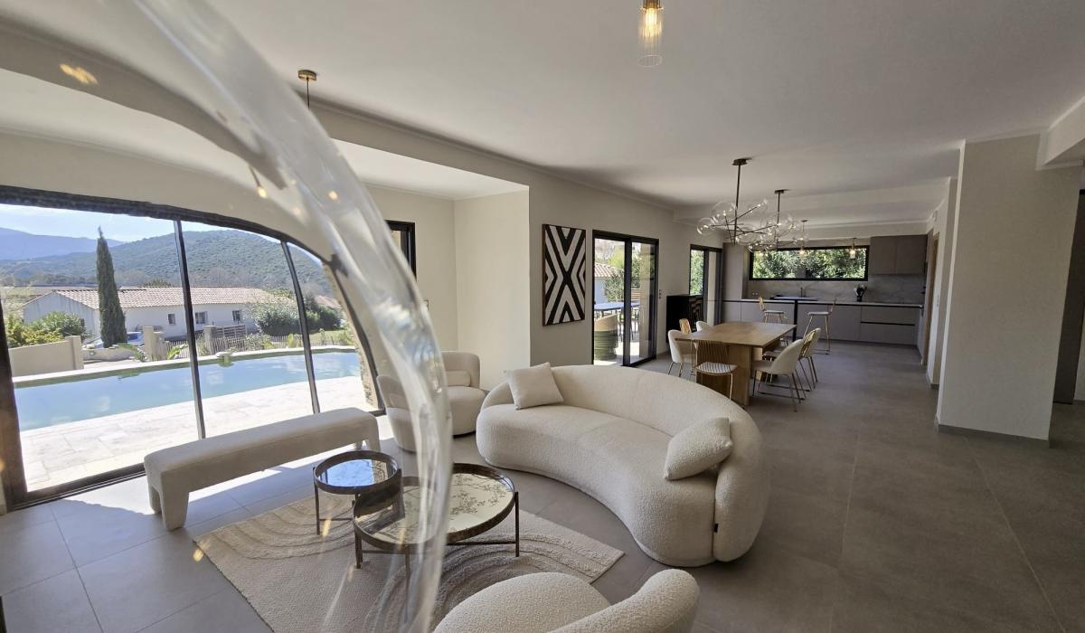 L’espace de vie lumineux s’ouvre sur une belle terrasse et un extérieur aménagé, où vous pourrez profiter d’une piscine privée, idéale pour se détendre en toute tranquillité.