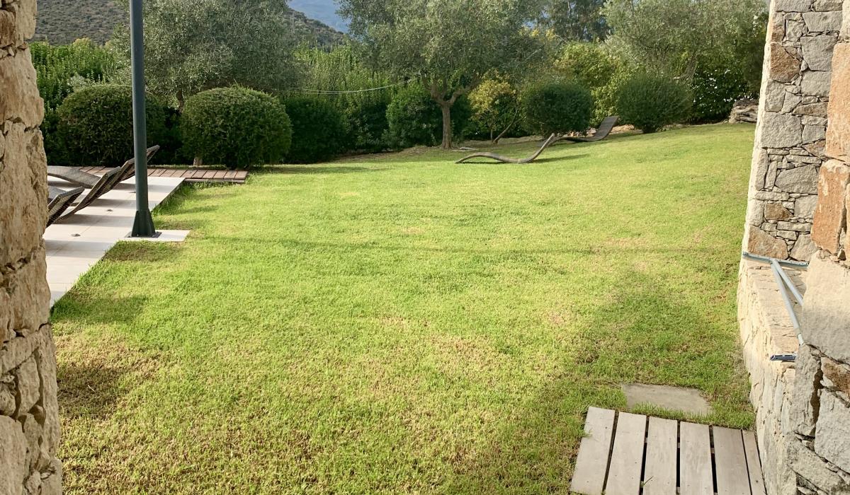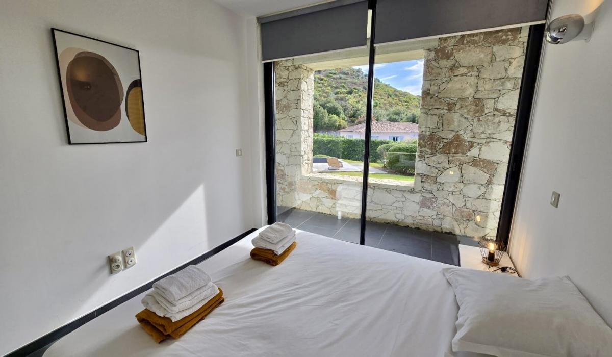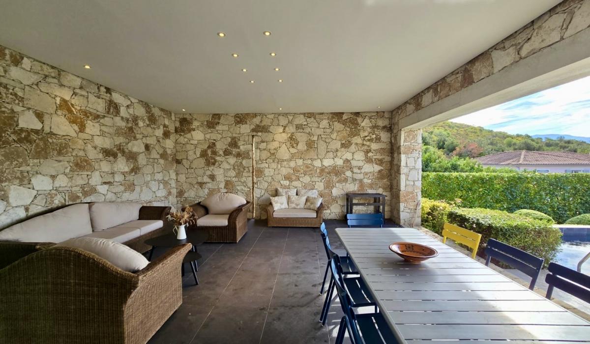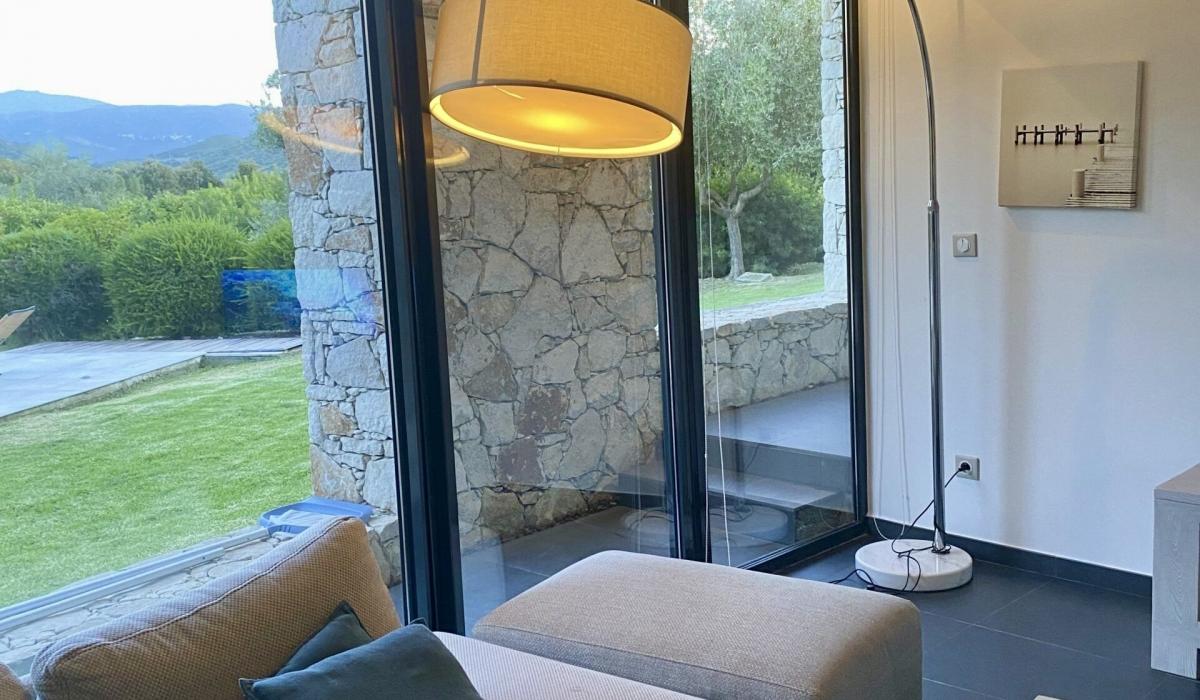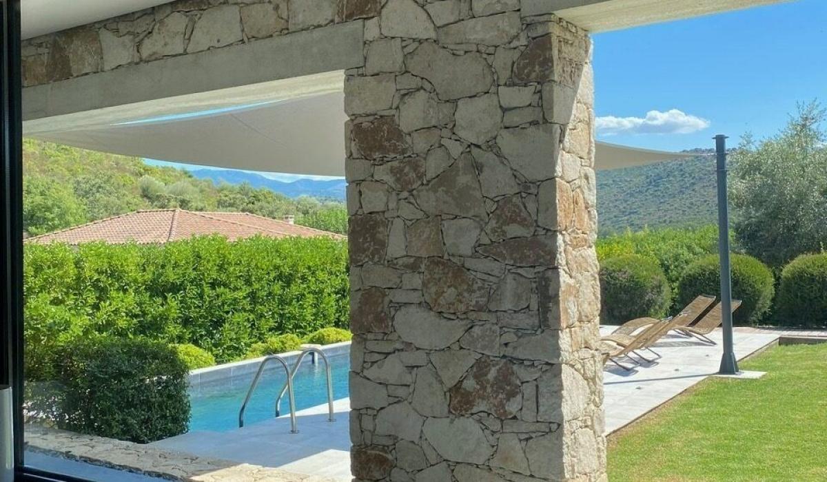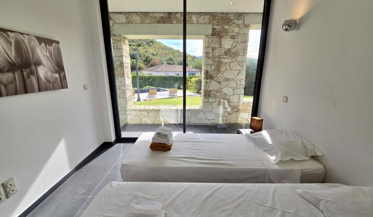 Profitez d’un jardin arboré, d’une piscine privative équipée de transats, et d’un terrain de pétanque pour des moments de détente sous le soleil corse.