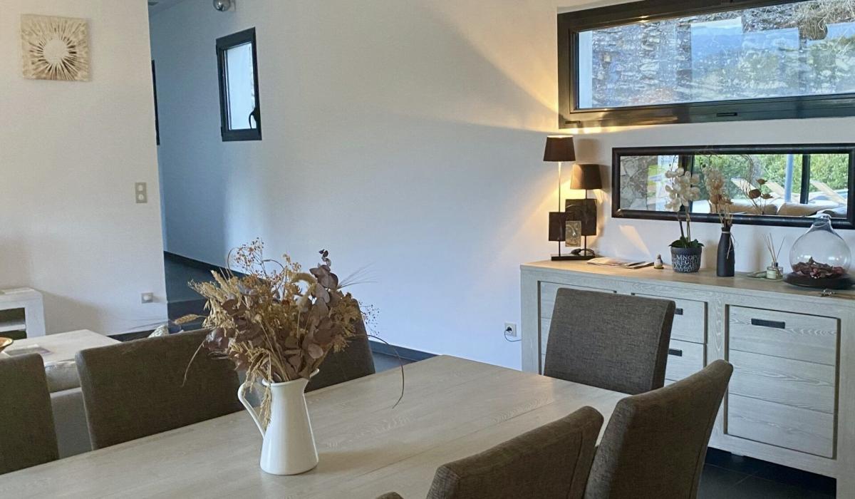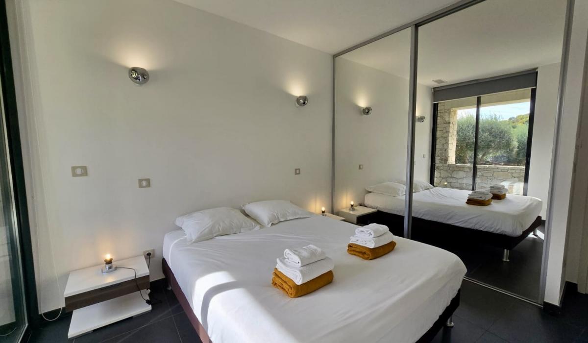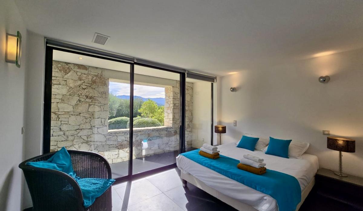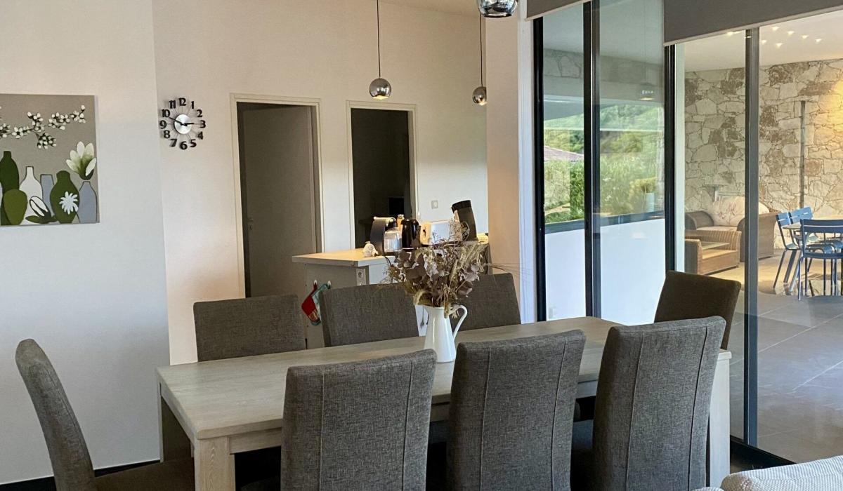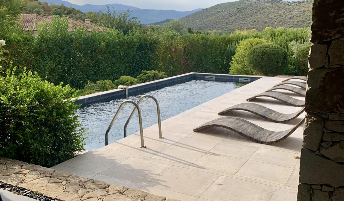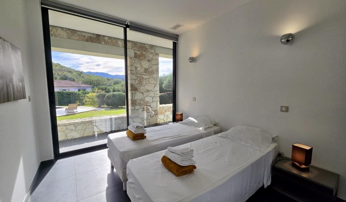 Profitez d’un jardin arboré, d’une piscine privative équipée de transats, et d’un terrain de pétanque pour des moments de détente sous le soleil corse.