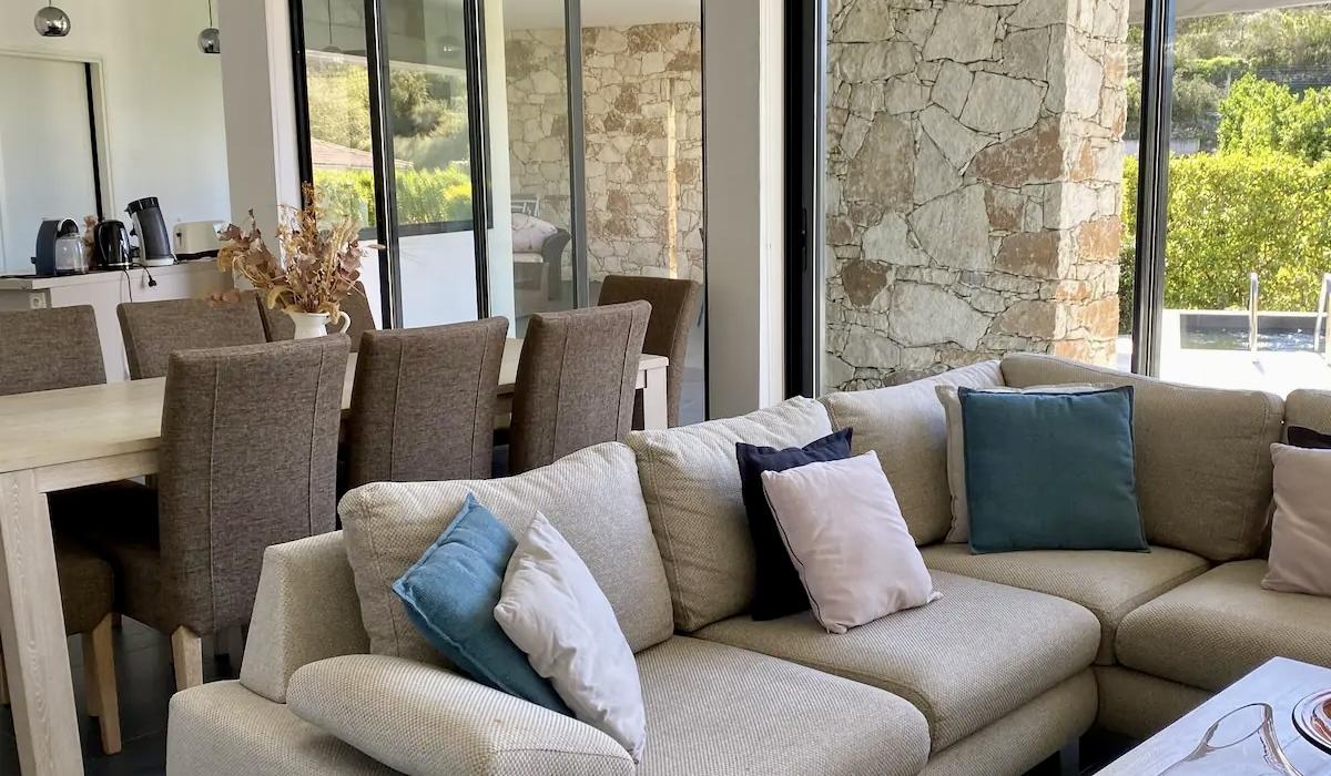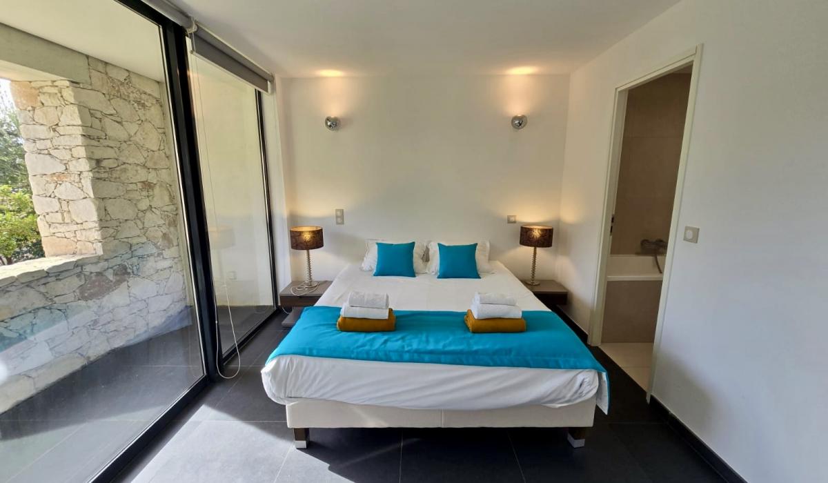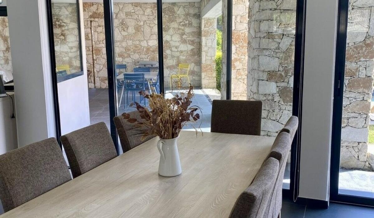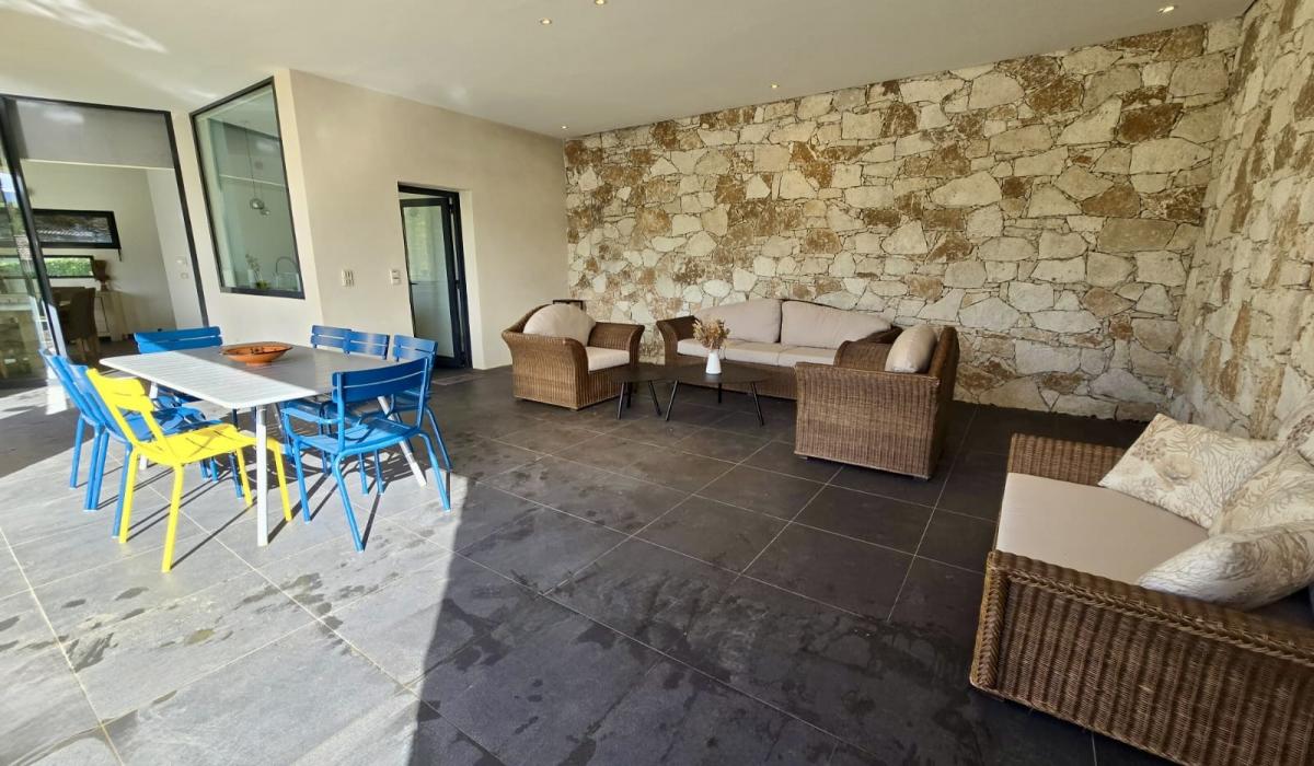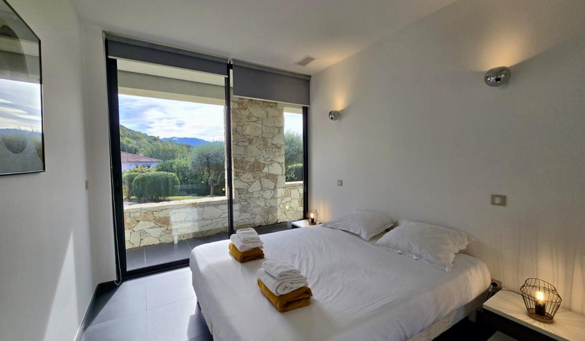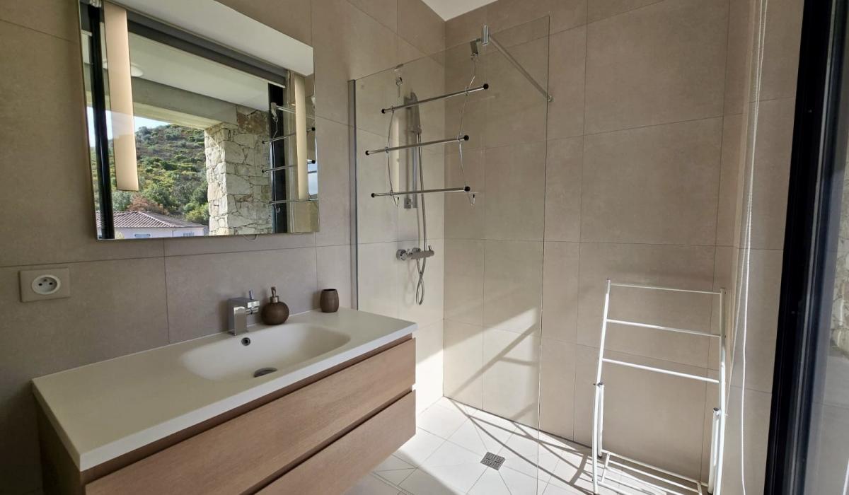 Profitez d’un jardin arboré, d’une piscine privative équipée de transats, et d’un terrain de pétanque pour des moments de détente sous le soleil corse.